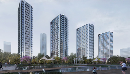 未来广场A区项目处于城市客厅规划版图核心位置。总投资约77亿元,占地约157亩,规划总建筑面积40万平方米,主要用于建设高新区市民中心和三大市场。